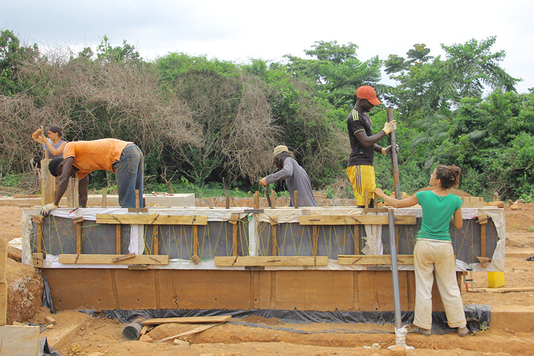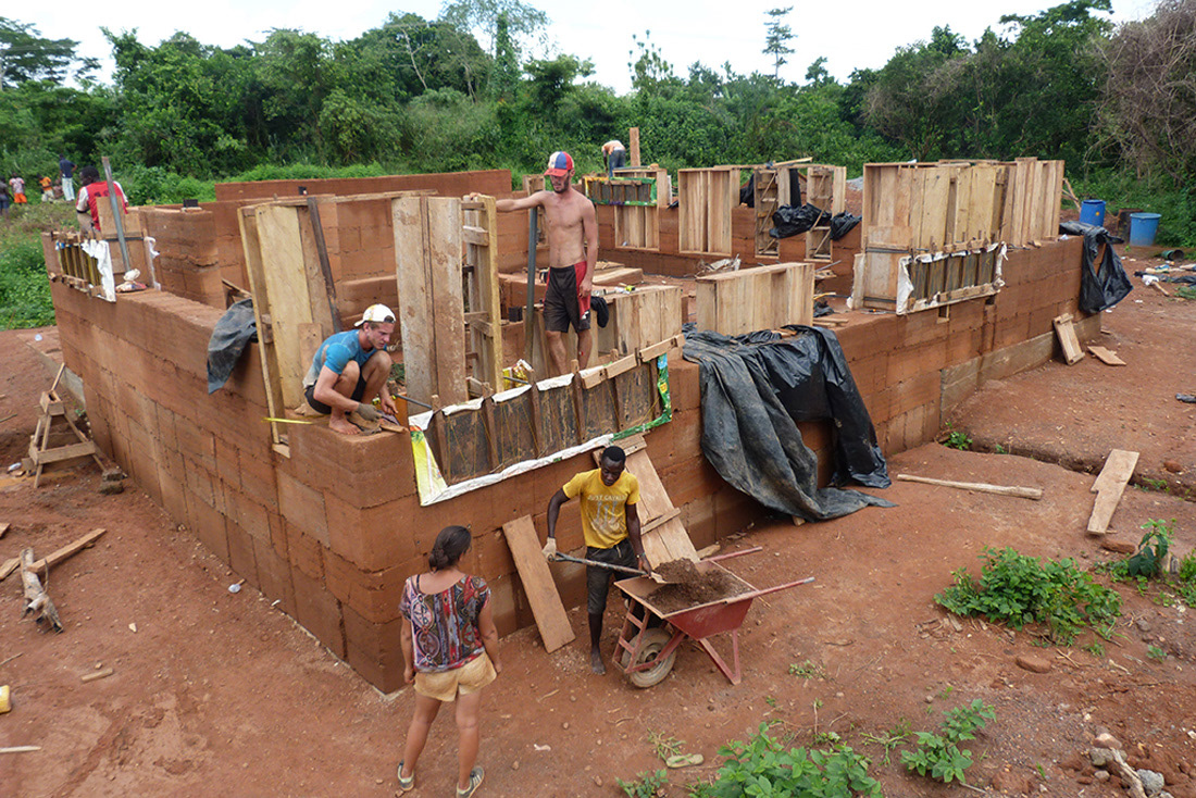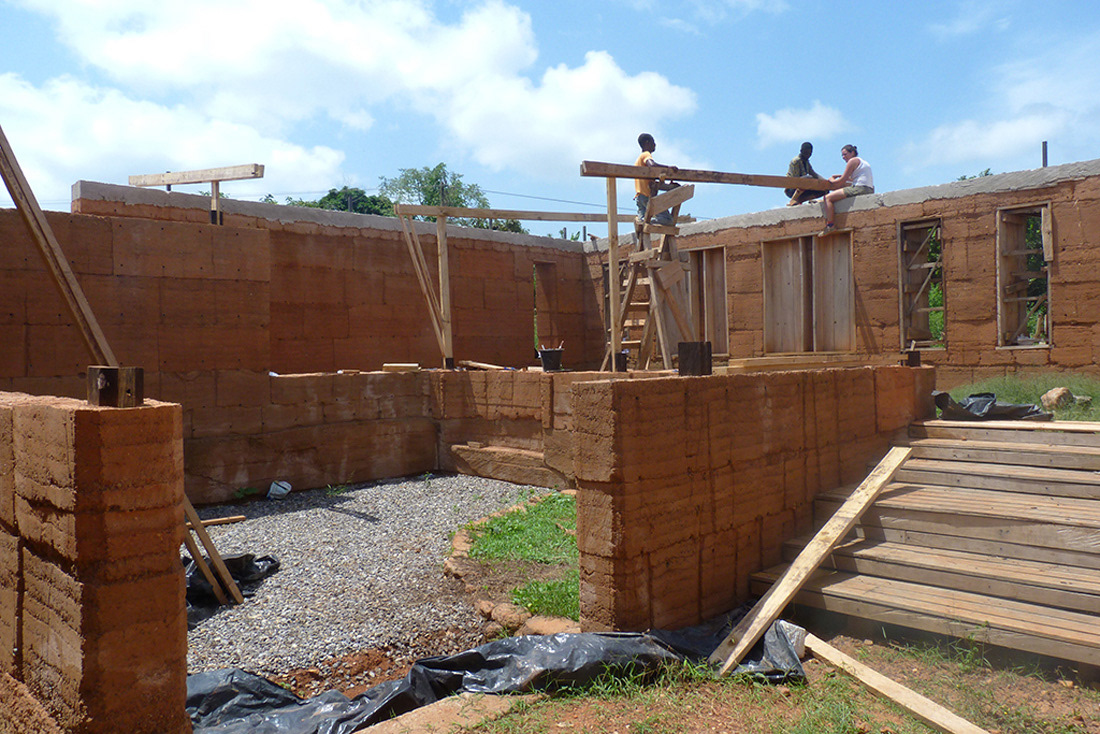 Construction d'une bibliothèque en pisé